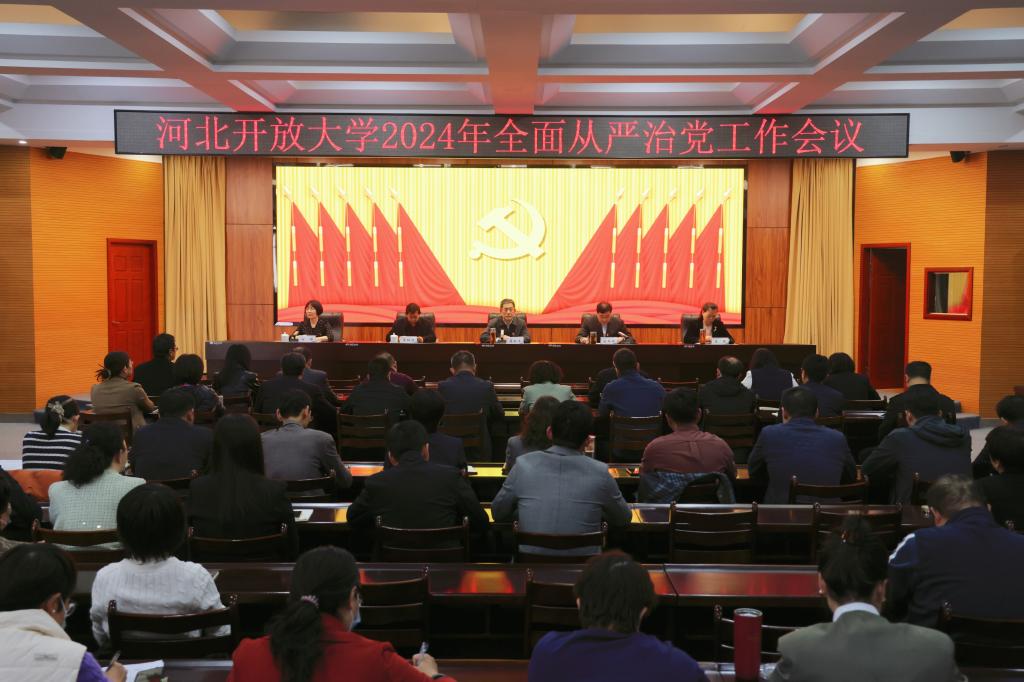 黨委書記籍獻平在講話中指出,過去一年,我們深入開展學習貫徹習近平新時代中國特色社會主義思想主題教育,強化政治建設,筑牢思想根基,夯實組織基礎,建強干部隊伍,推進黨風廉政建設,發揚擔當實干精神,學校全面從嚴治黨工作取得扎實成效,為河北開放大學事業高質量發展提供了堅強政治保障。對照黨中央、省委工作部署和全省教育系統全面從嚴治黨工作要求,2024年我們要進一步提高政治站位,堅定不移地推進全面從嚴治黨向縱深發展。要深刻領悟習近平總書記關于黨的自我革命的重要思想,不斷深化對黨的自我革命的規律性認識;強化政治引領,持續加強黨對學校工作的全面領導;踐行新時代黨的組織路線,持續提升基層黨建工作質量;堅持以嚴的基調深化紀律建設,努力營造崇廉拒腐良好風尚;主動防范化解風險,確保學校安全穩定;夯實責任鏈條,層層壓實管黨治校政治責任。我們要發揚徹底的自我革命精神,永葆“趕考”的清醒和堅定,縱深推進學校全面從嚴治黨,為加快推進“特色鮮明、優勢突出、水平一流”的河北開放大學建設提供堅強保障。