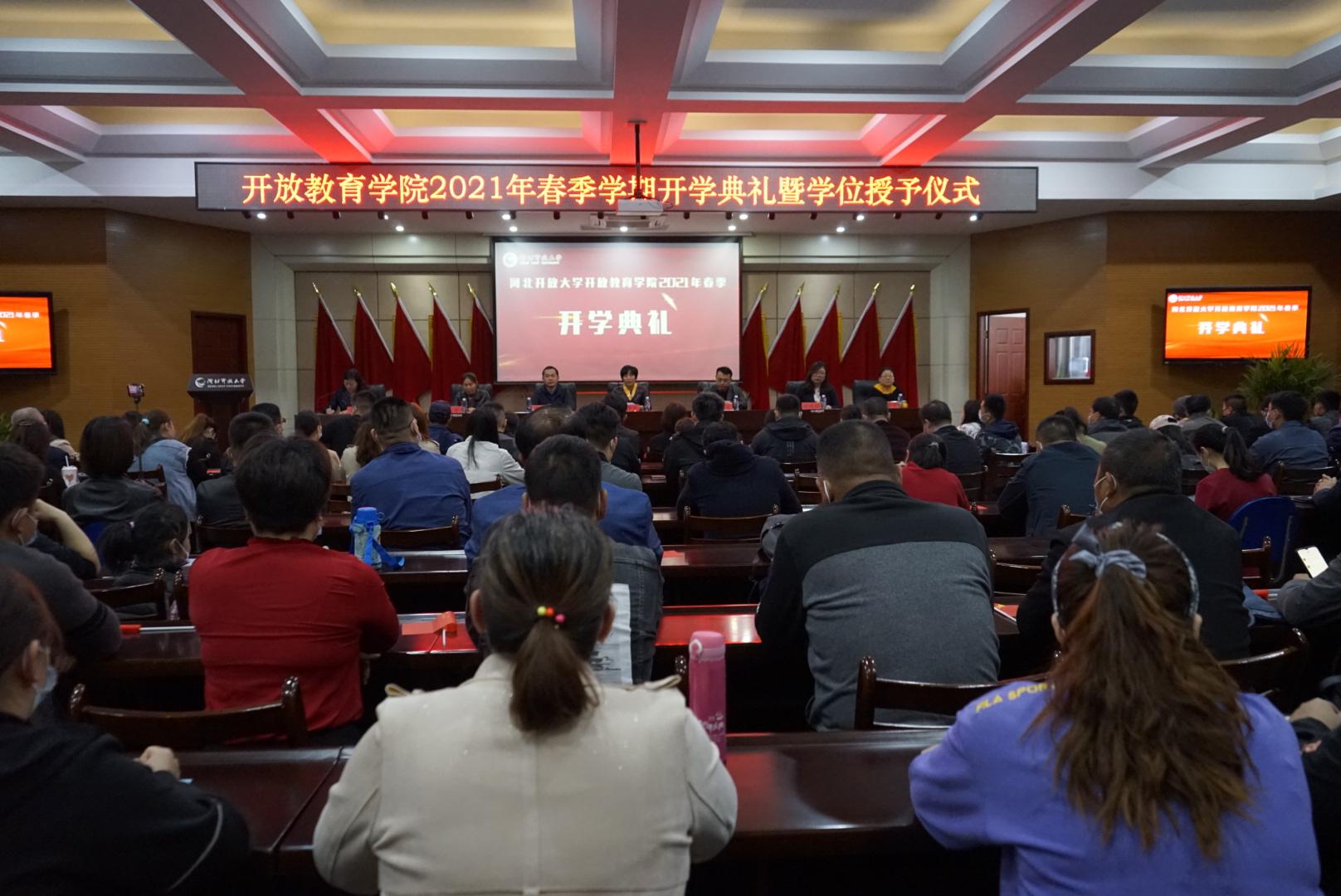 4月11日上午,開放教育學院在學校終身教育大講堂舉行2021年春季學期開學典禮。開放教育學院院長李貴夕講話,教學支持部教師周麗代表教師發言,開放教育學院考籍科李維代表班主任發言,新、老生代表發言。典禮由開放教育學院副院長史愛紅主持。