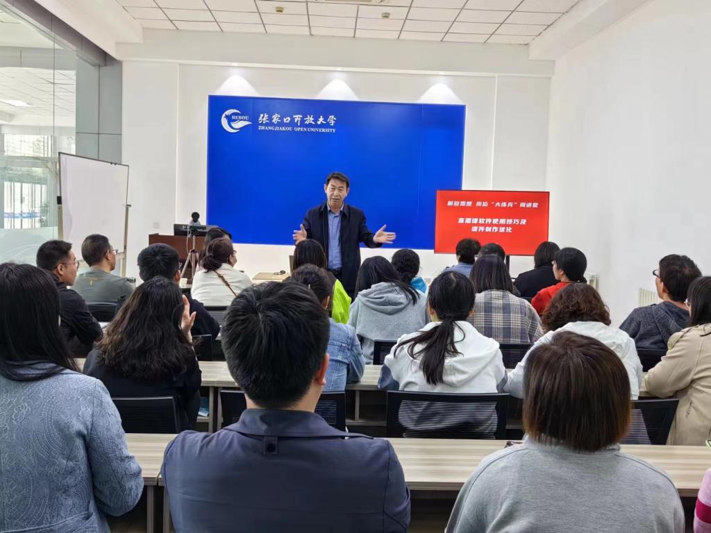 5月4日,張家口開放大學(xué)在培訓(xùn)中心直播教室開展了教師直播教學(xué)培訓(xùn)活動。校長張宏文、副校長張麗桃、副校長周穎、教學(xué)科研處、網(wǎng)絡(luò)中心及全體任課教師參加了培訓(xùn)。培訓(xùn)由教學(xué)科研處副處長鄭博主持。