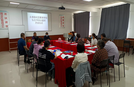 5月11日上午,弘文書法公益班在永清縣社區教育學院(永清開放大學)正式開班。