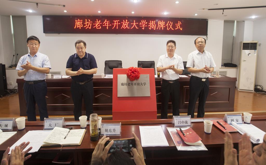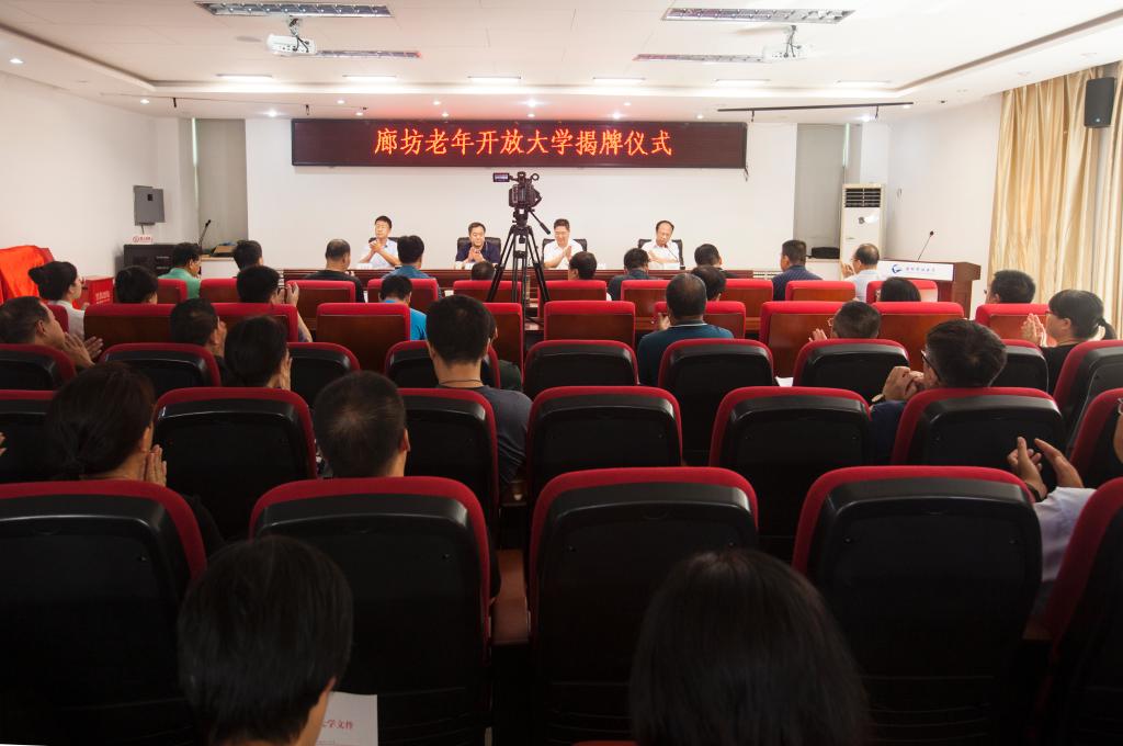 首先,王開榮宣讀了《廊坊市教育局關于同意廊坊開放大學加掛廊坊老年開放大學的批復》。同意依托廊坊開放大學建立廊坊老年開放大學,與廊坊開放大學實行一套人馬,兩塊牌子,專門從事社區教育、老年教育的教學、管理和科研工作。