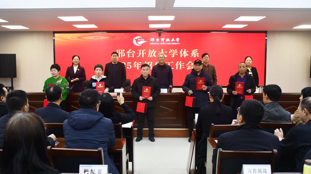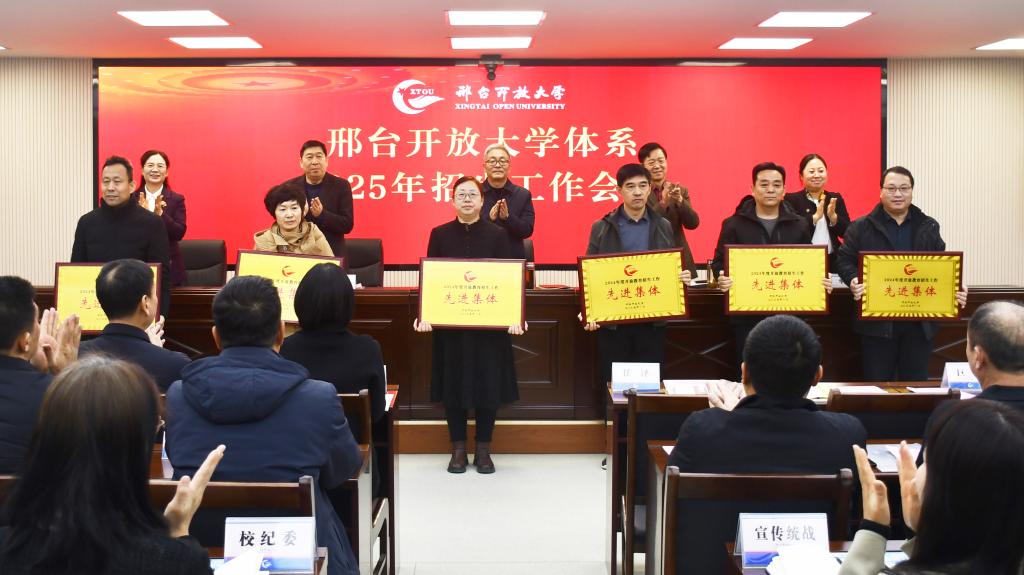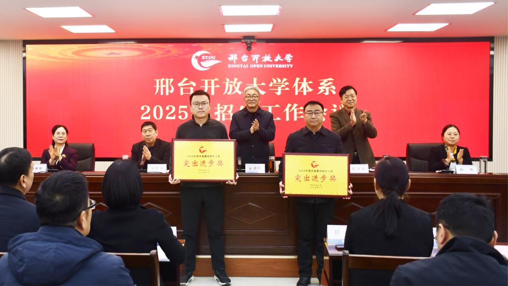 會上,黨委副書記霍秀申宣讀了《邢臺開放大學關于表彰2024年度開放教育招生工作先進集體、先進個人的決定》,領導班子為招生工作先進集體和先進個人頒發(fā)了獎牌和證書,先進集體代表威縣開放大學副校長胡金濤、先進個人代表隆堯開放大學校長徐璟琨和寧晉開放大學教師賈玲分別作了典型發(fā)言,黨委委員、副校長楊密婷對2025年招生工作進行了安排部署。