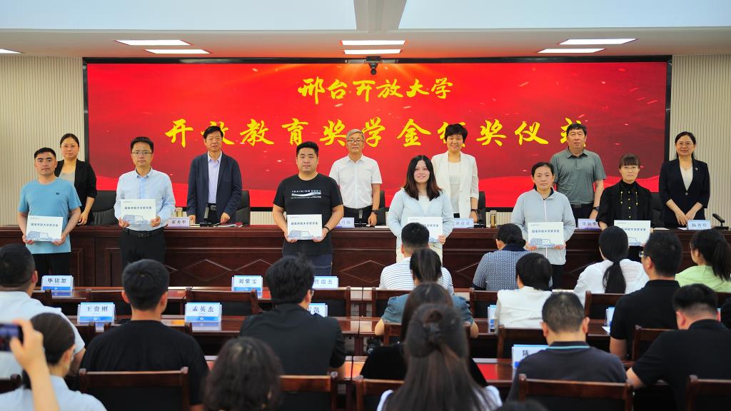 5月28日上午,邢臺開放大學舉行開放教育獎學金頒發儀式,為78名獲國家開放大學獎學金的學生頒發了獎金。儀式由校長劉彥君主持,黨委書記宗召偉出席儀式并講話,校領導霍秀申、梁桂軍、孫華、楊密婷和全體班主任老師以及獎學金獲得者代表共計70余人參加了儀式。
