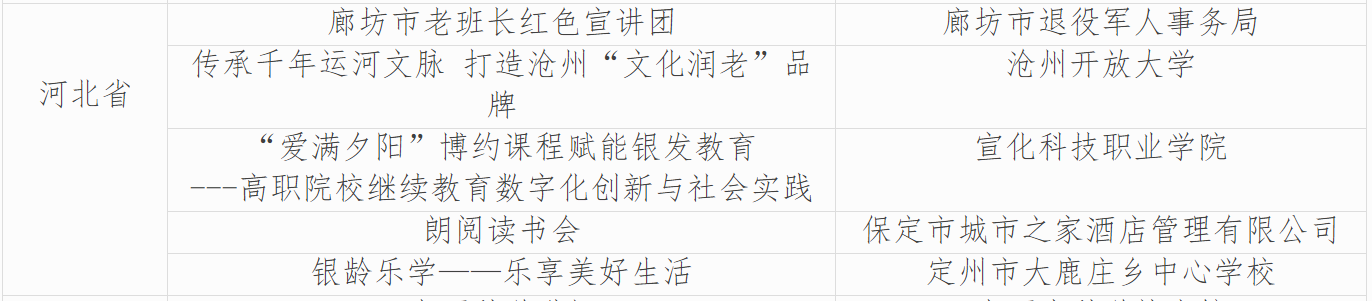 2024年河北省新時代“終身學習品牌項目”宣傳推介名單