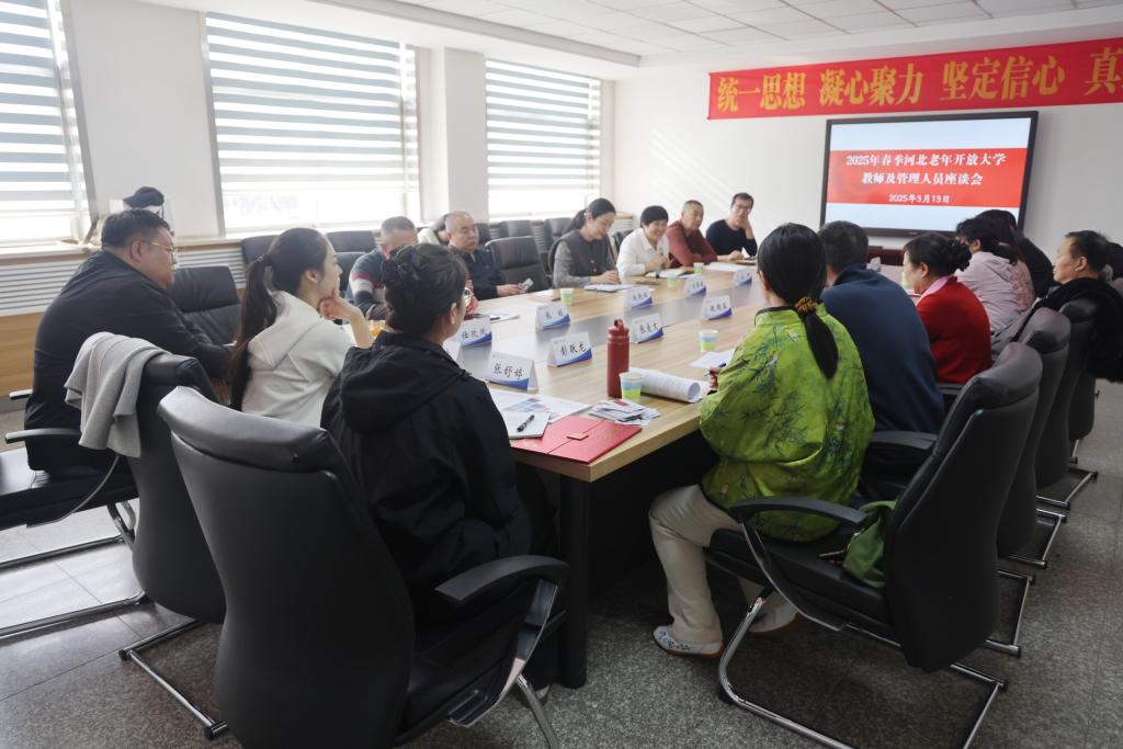 3月13日,河北老年開放大學召開2025年春季學期教師及管理人員工作會,社區教育學院院長王麗娟出席會議并講話,副院長宋瑋主持會議并做工作部署,來自校本部及教學點的20余名教師及班主任參加會議。